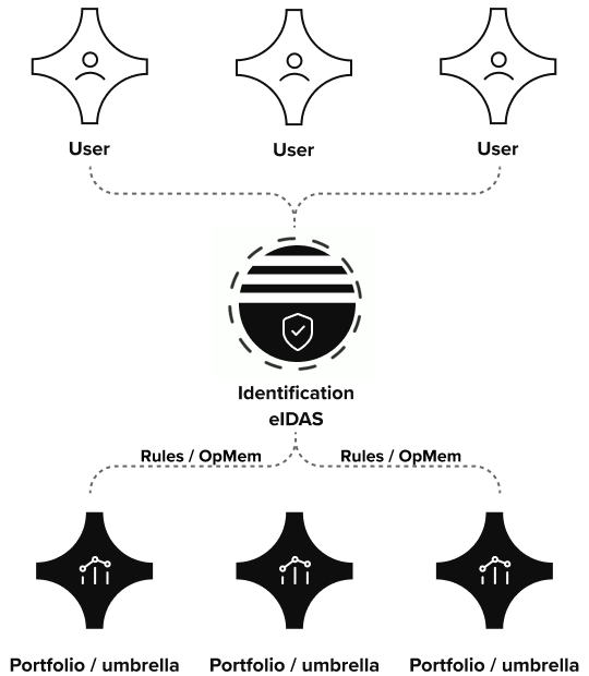 For each portfolio / umbrella, the system creates a set of rules that mirrors the Operating Memorandum. Users are guided by that set of rules when interacting with the system.